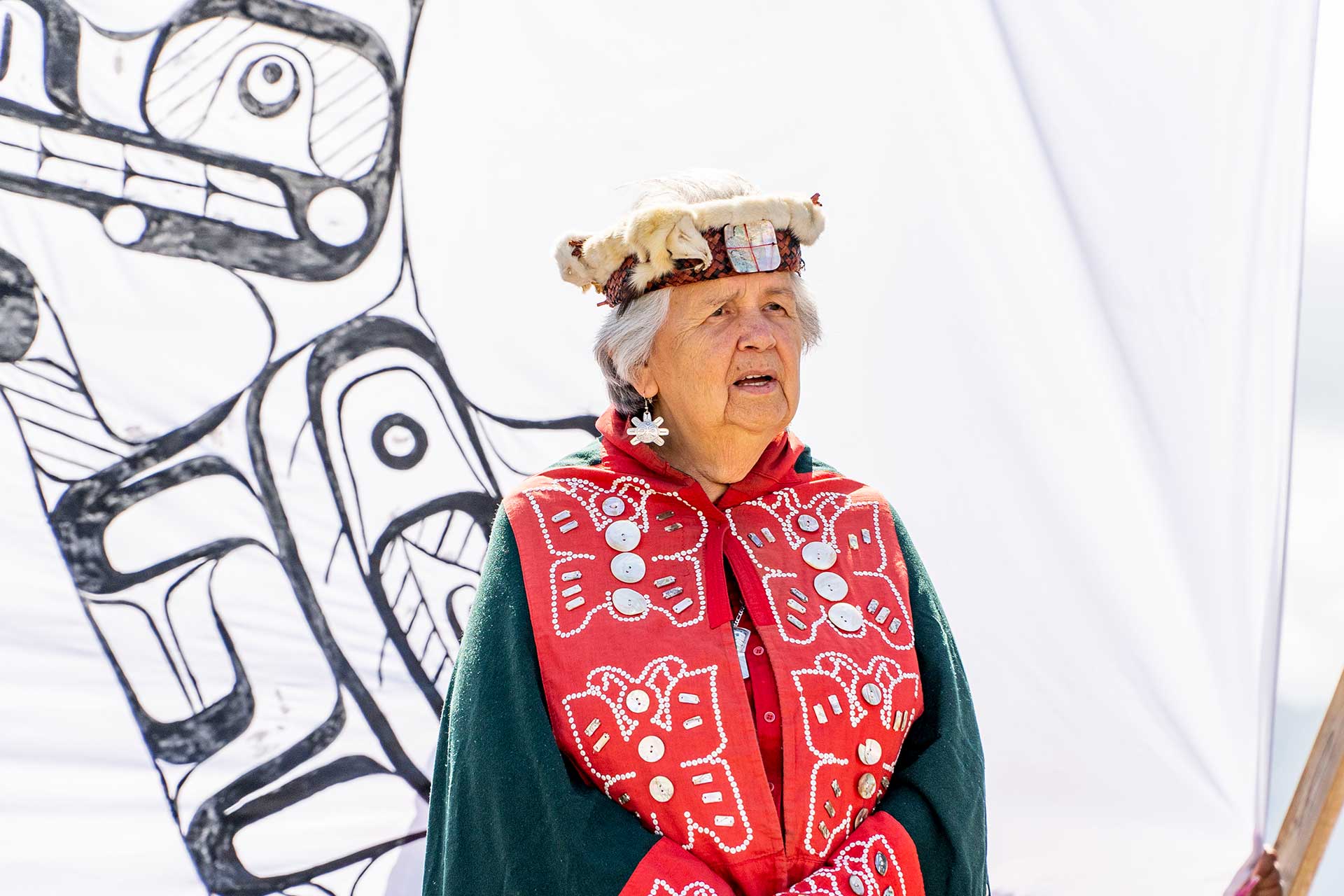 In 1921, after the ban had been in place for over three decades, Dan Cranmer of the Kwakwa̱ka̱’wakw held the largest recorded potlatch ceremony in BC’s northwest coast. The Cranmer family, recognizing the need to preserve their songs and traditions, had been keeping the potlatch alive for generations. Despite it being outlawed, Dan Cranmer held this potlatch with at least 300 guests in secret at the village of ʼMimkwa̱mlis, a remote island east of Alert Bay.