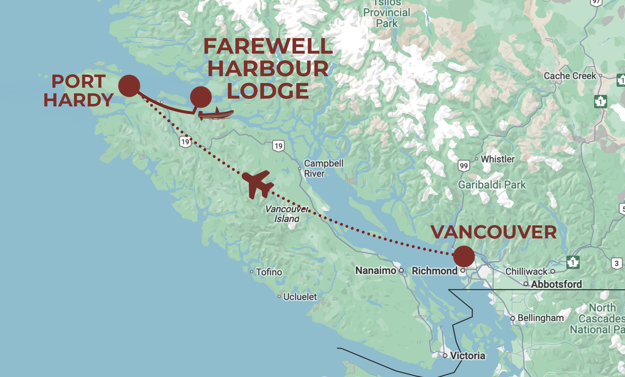 - Flight to/from Port Hardy and Vancouver International Airport.