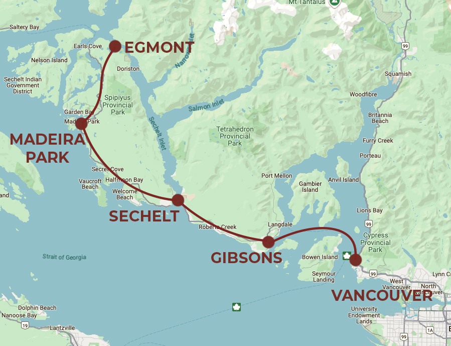 From Gibsons to Egmont, kayaking to cultural tours, this family-friendly self-drive road trip is the perfect introduction to the Sunshine Coast. Explore the region’s expansive beaches, lush rainforest trails, Indigenous history, and the eclectic culinary and arts scene along the way.